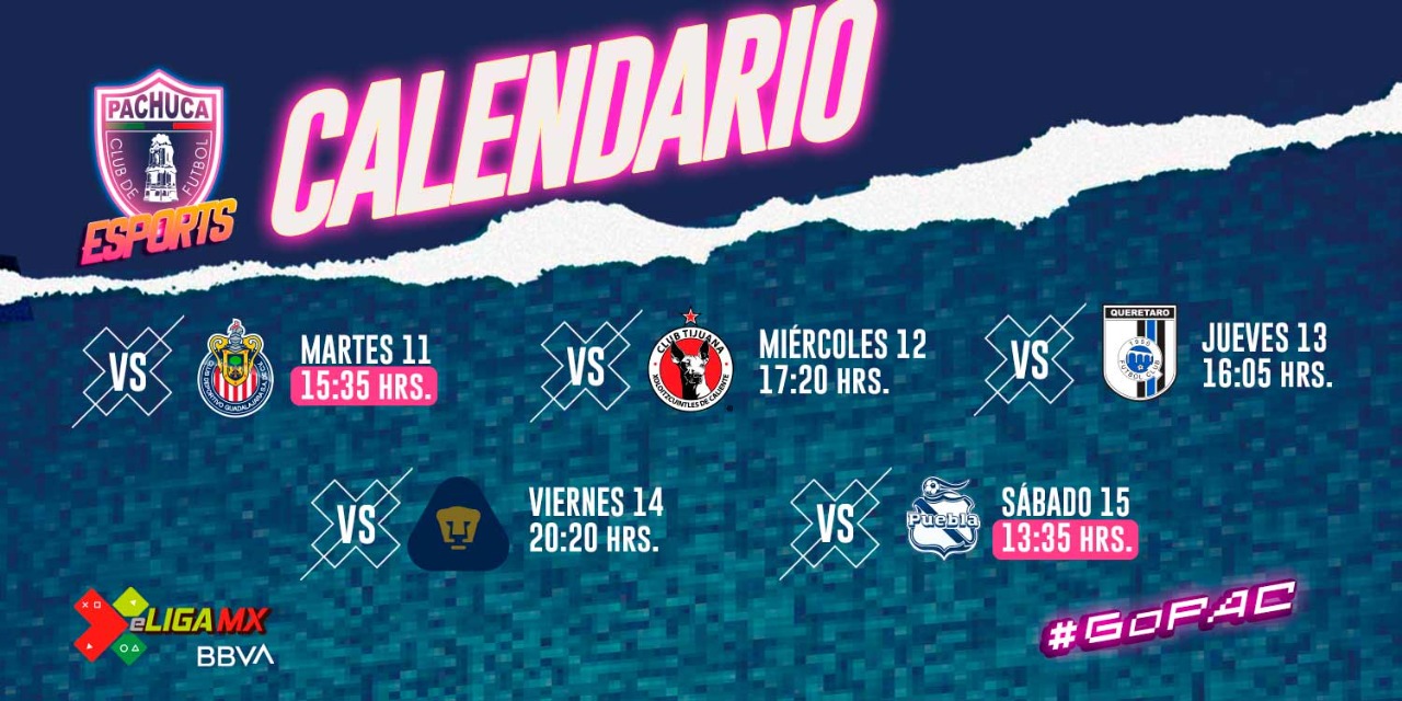 El Club Pachuca Esports enfrentará a Chivas, Xolos, Querétaro, Pumas y Puebla dentro del Grupo 3 de la primera fase del torneo a disputarse del 11 al 15 de mayo.