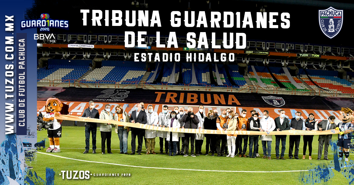 Desde esta noche la Tribuna Sur del Estadio Hidalgo será conocida como la ‘Tribuna Guardianes de la Salud’ y en ella están representados los nombres de varias de las instituciones de Salud, tales como el Instituto Mexicano del Seguro Social, el Instituto de Seguridad y Servicios Sociales de los Trabajadores del Estado, el Centro de Excelencia Médica en Altura avalado por FIFA, el Hospital ABC y la Secretaría de Salud del Estado de Hidalgo, como un homenaje permanente más que merecido para todos aquellos que valientemente han sacrificado su vida en la lucha ante la pandemia por Covid-19.